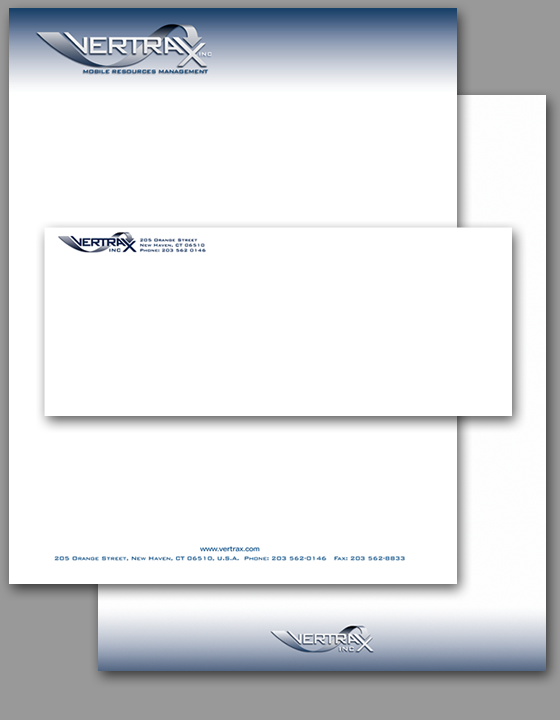 The name Vertrax came about as a combination between "virtual" and "tracking". I designed and produced the folowing collateral: